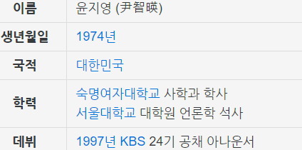 지난 2004년 보도에 따르면 SBS 윤지영(당시 나이는 31세) 아나운서가 서울 삼성동에 위치한 인터컨티넨탈호텔에서 회사원 이정욱(31)씨와 화촉을 밝혔습니다.