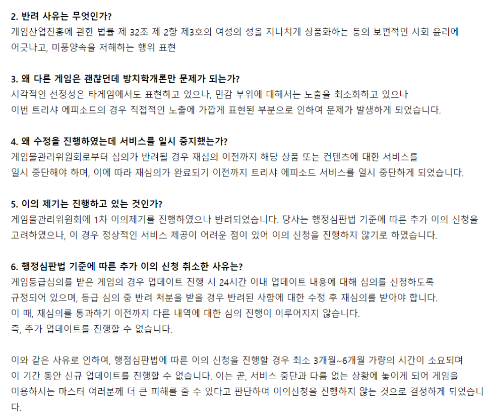 게임사에서 처음에 만들어내고 찍어내는 목적은 성인 어른들을 위한 게임이기는 하지만 너무 과감했던게 문제가 되었습니다. 여성을 성상품화해서 상업적 판매를 한게 큰 문제가 될 수 밖에 없었던 것이죠. 저도 이 게임을 플레이해보고 있지만 가끔은 너무 여성을 성상품화하는게 아닌가라는 느낌을 심하게 받았기 때문이지요.