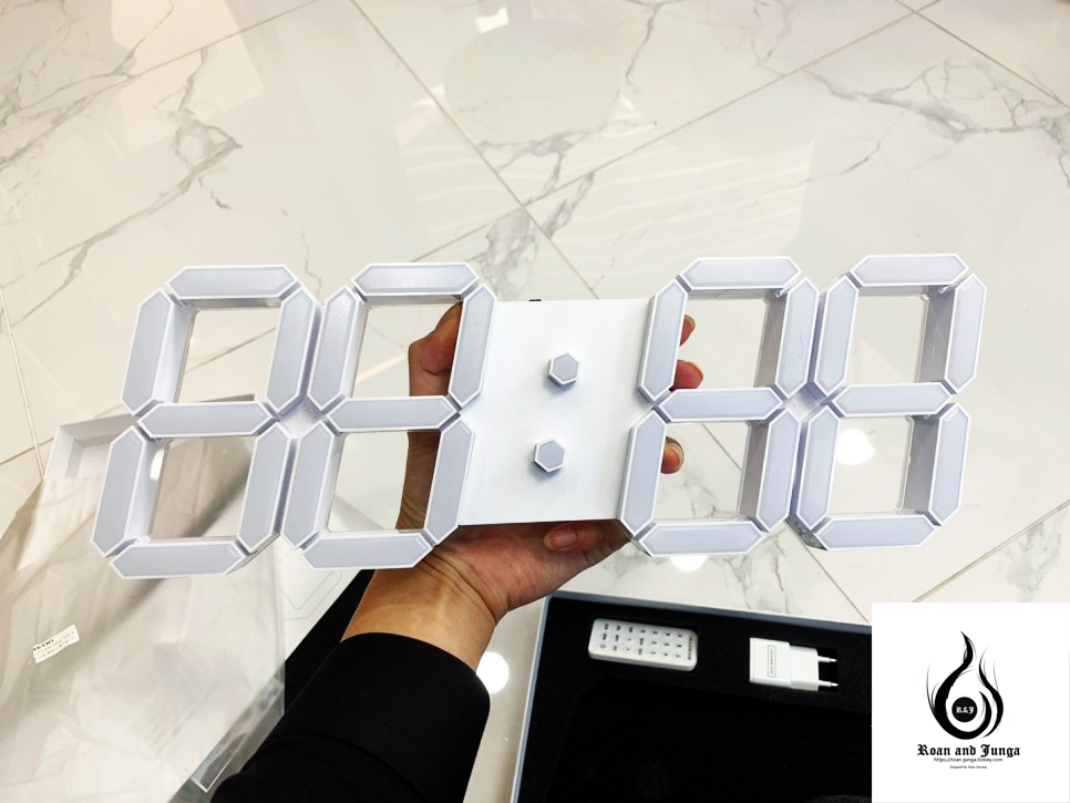 그리고 벽에 걸거나 책상에 올려놓고 전선을 연결하여 작동을 시키면 되고, LED 색상도 리모트로 변경 할 수 있습니다. 시계 본체로는 아무것도 작동을 못하나 무선 리모트로 조작 및 설정을 할 수 있다는 점입니다. 그리고 LED의 강력한 인테리어와 이미지를 부각 시킬 수 있습니다.