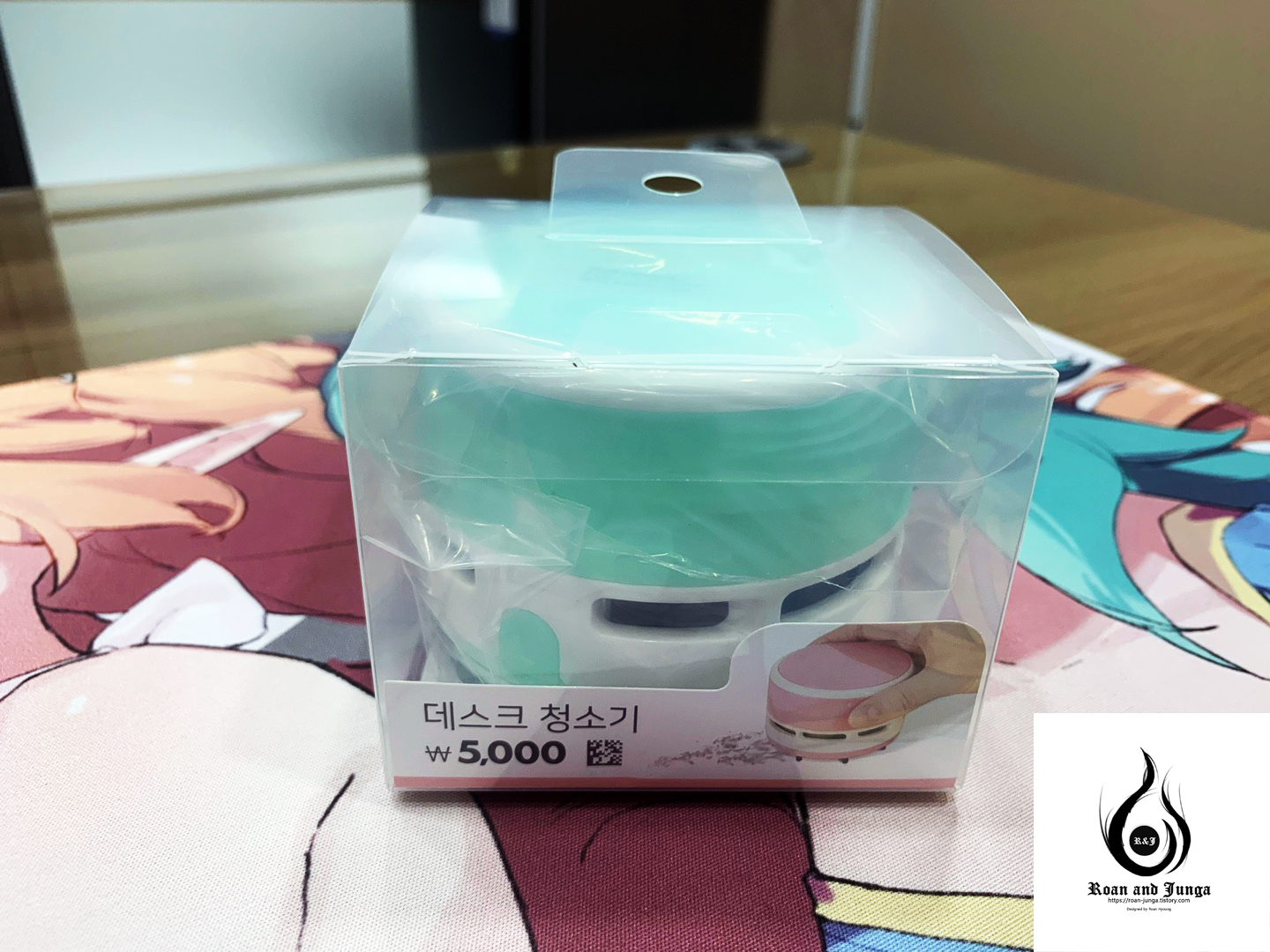 저는 남자이기 때문에 민트색으로 구매를 했는데요. 어찌보면 책상용 로봇 청소기 같은 느낌도 나고 이거참 귀여운 청소기 같습니다. 하짐나 문제는 성능이 좋아야겠죠? 전에 5,000원짜리 USB 다이소 미니 청소기를 구매했다가 진짜 바로 버린적이 있어서 청소기는 다시는 안살려했는데 또 질러버렸네요.