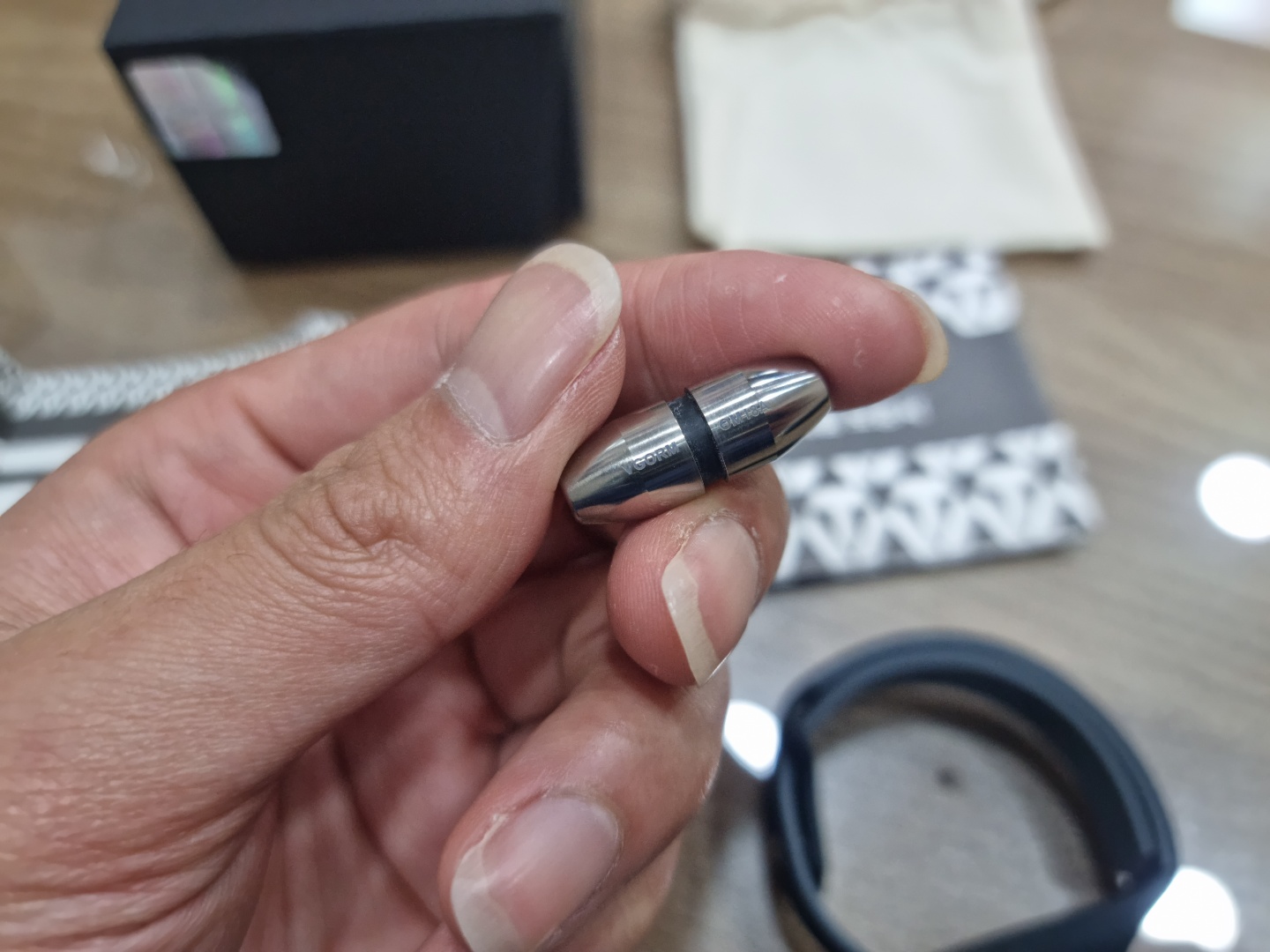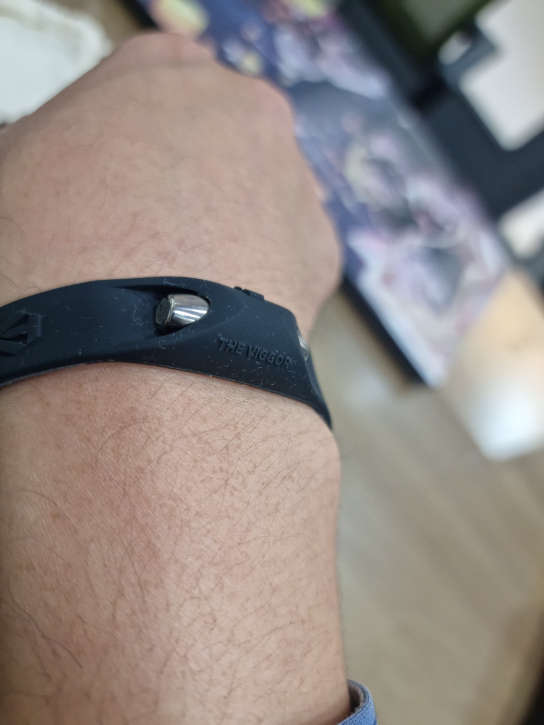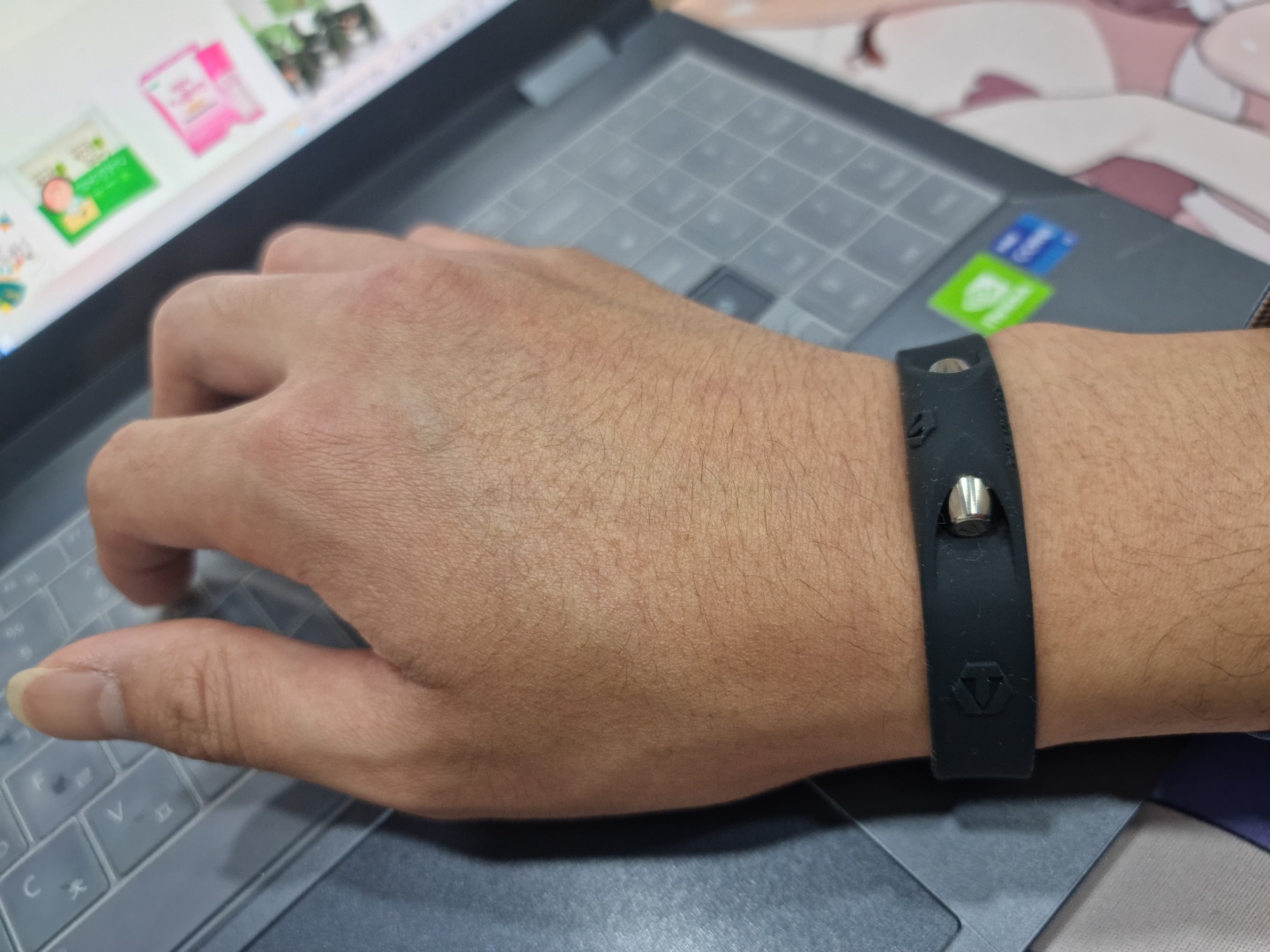 착용샷을 찍어보니 일반 실리콘 손목 밴드와