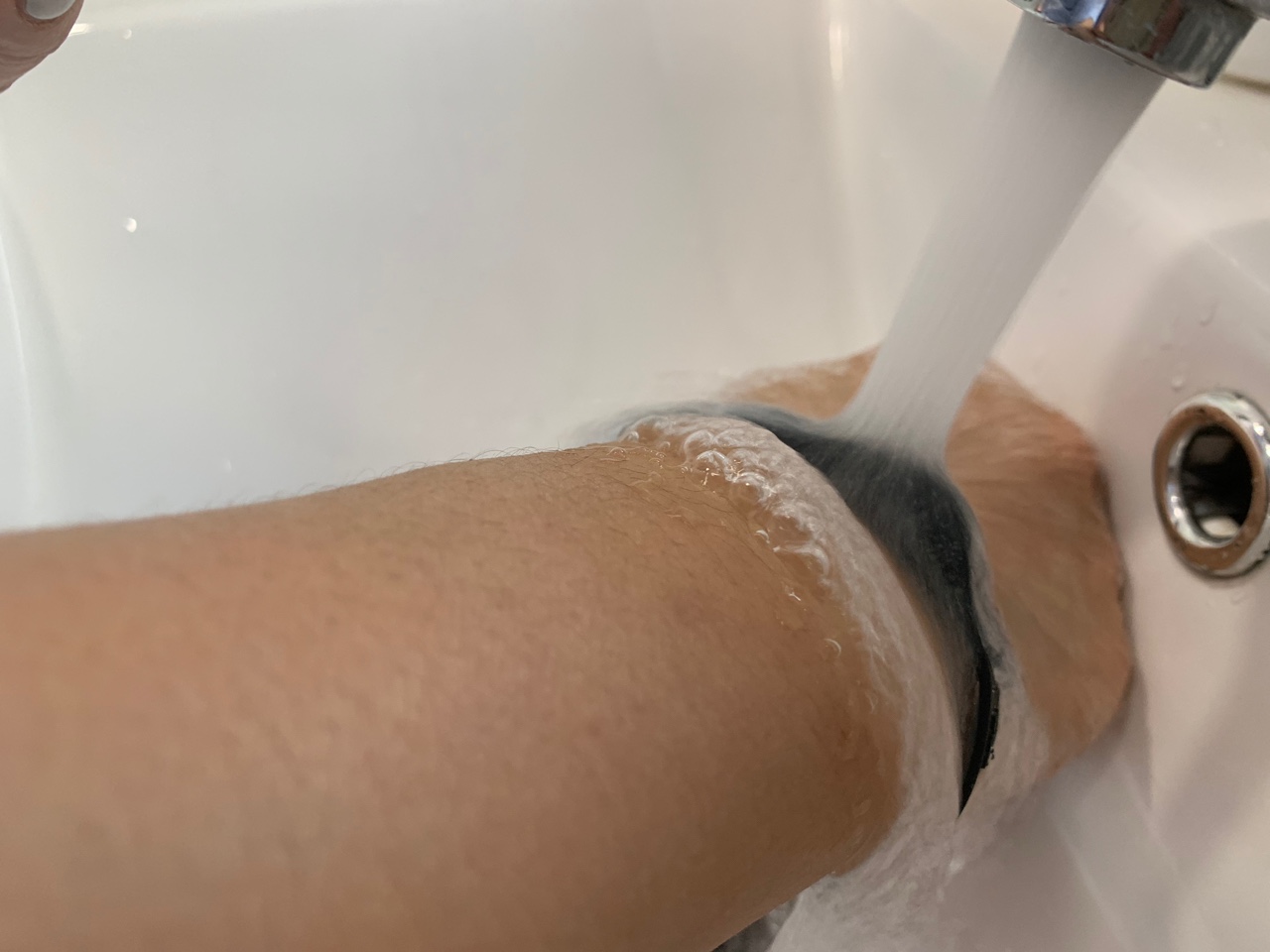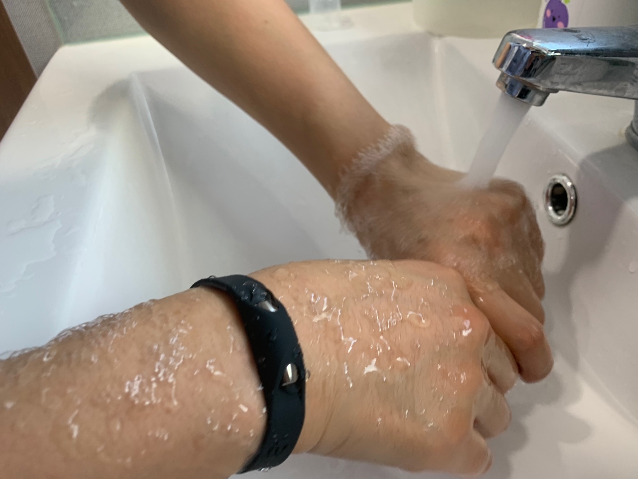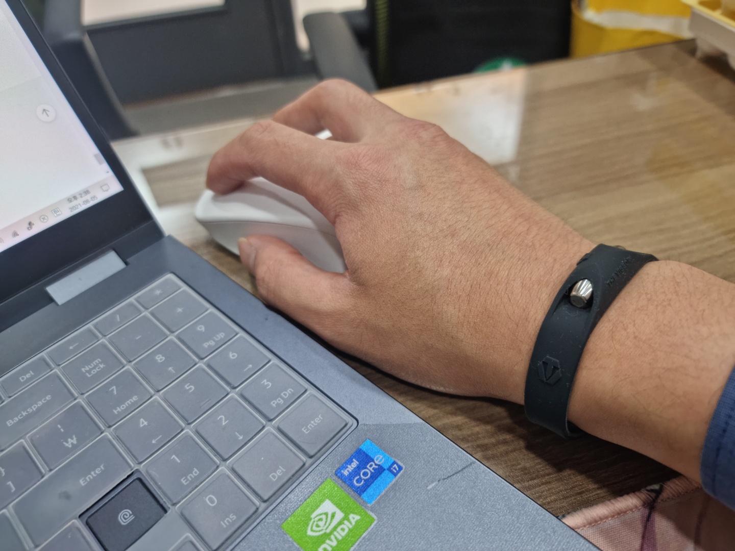 착용샷을 찍어보니 일반 실리콘 손목 밴드와