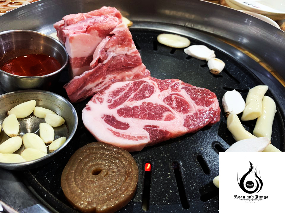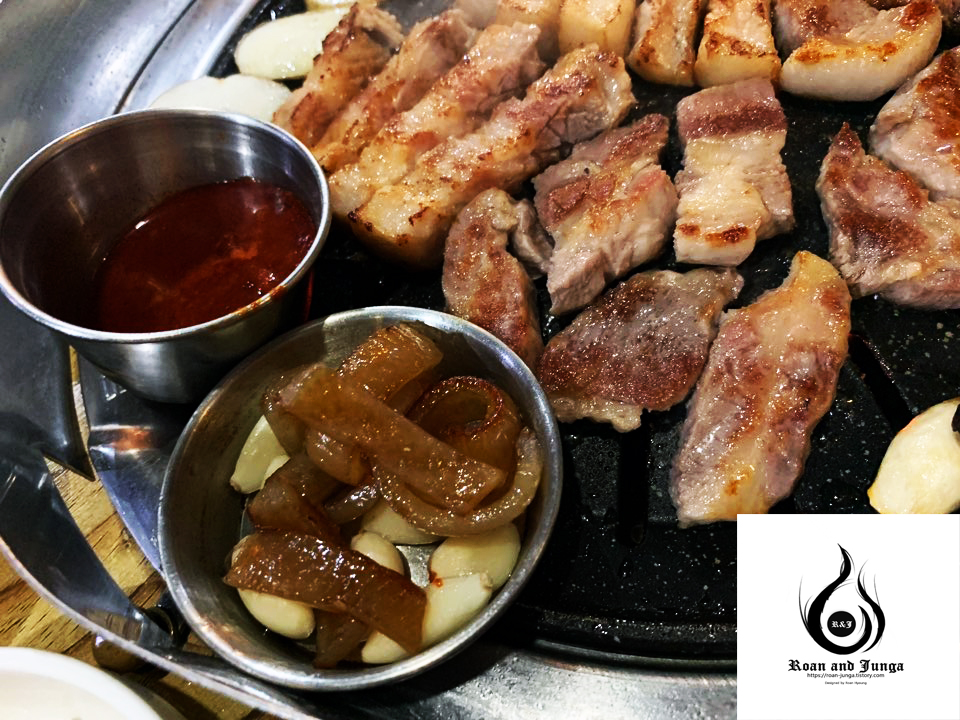 그리하여 알려주신 지인과 함께 돼지 고기 구이가 맛있는