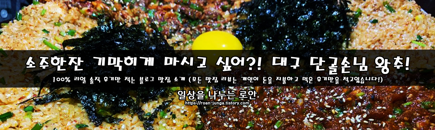 대구 맛집 Top.5! 안녕하세요! 일상을 나누는 로안입니다! 티스토리 블로그를 시작한지 벌써 2주년이 되었는데요?! 그러면서 여러가지 포스팅을 작성하고 일상속의 평범하면서도 평범하지 않은 ��