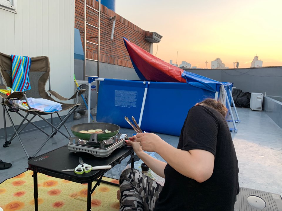 일단 해가 지기전에 고기를 구워 먹다보니